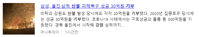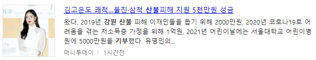 강원 산불로 인해 많은 분들이 기부해주셨지만 그중에서도 유명 회사나 연애인들의 기부 또한 있었다.
