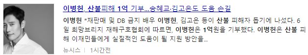 배우 이병헌도 산불재해에 1억원을 기부했다고 한다.