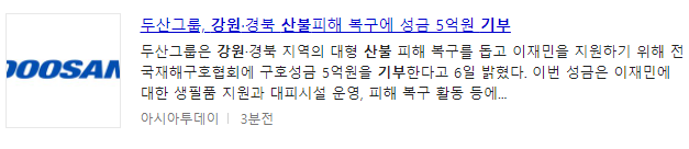 두산그룹은 피해복구에 5억원을 기부