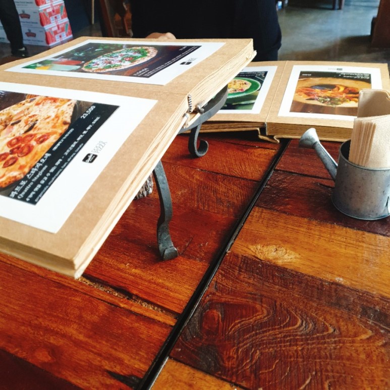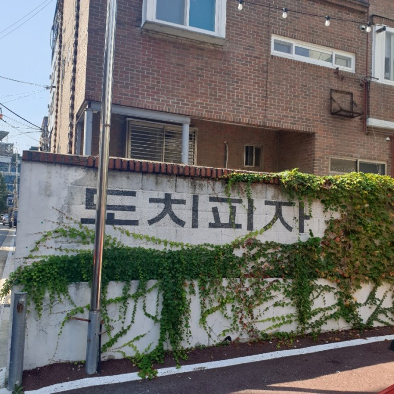 이렇게 벽면에 도치피자라고 쓰여있더라고요!