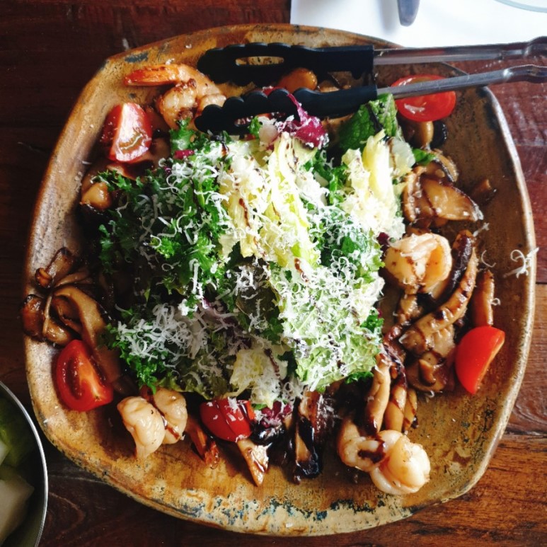 그리고 새우랑 마늘, 토마토를 볶아 나와요~.