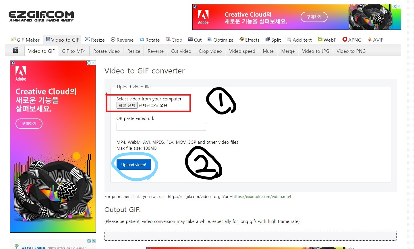 첫번째! 사이트 클릭! >>> 사이트 : https://ezgif.com/video-to-gif