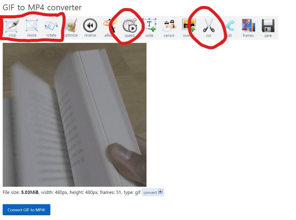 움짤을 만드는데 제일 중요한 영상의 재생 속도와 영상의 길이, 움짤의 크기를 편집할 수도 있습니다.