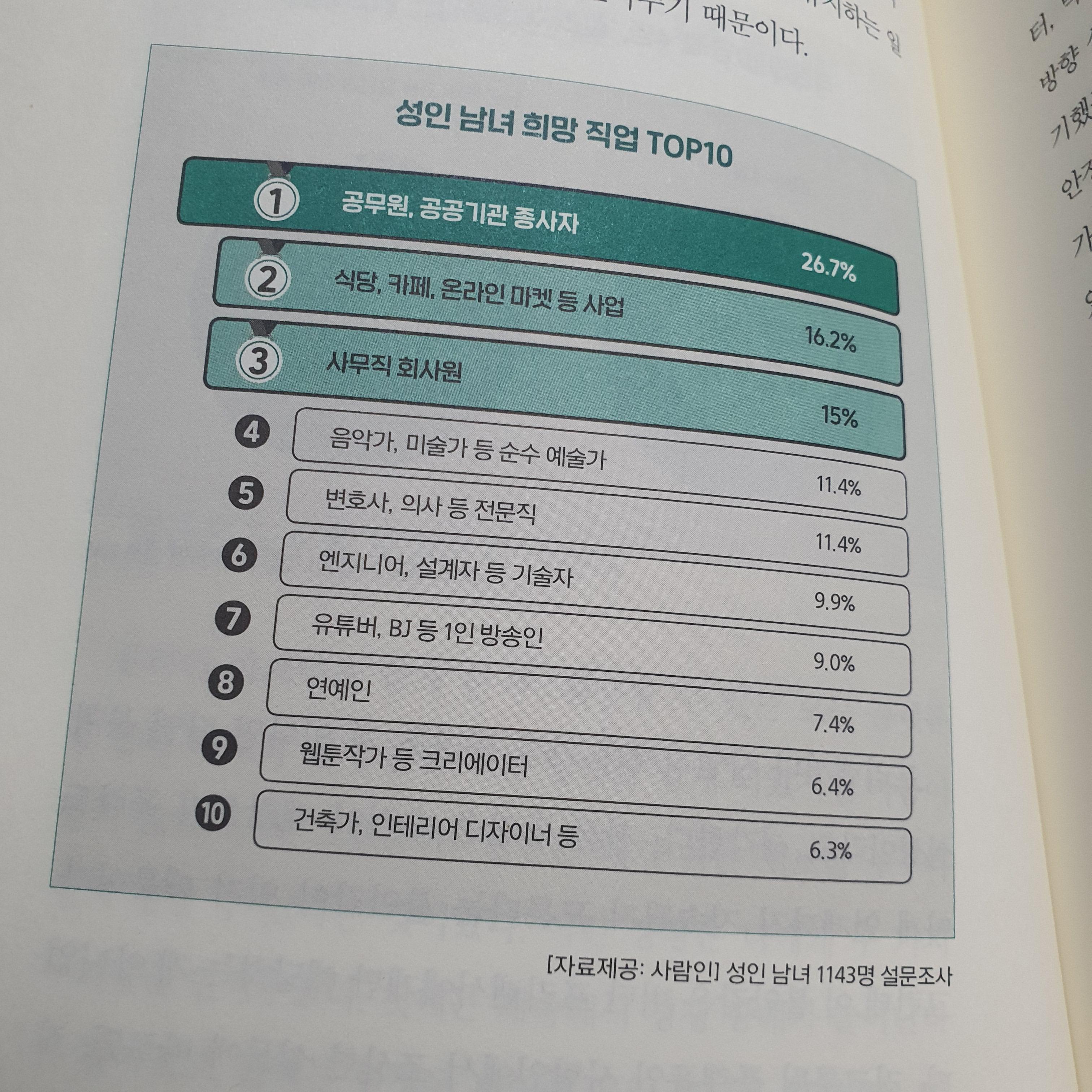 책에서 말하는 성인남녀 희망 직업TOP10