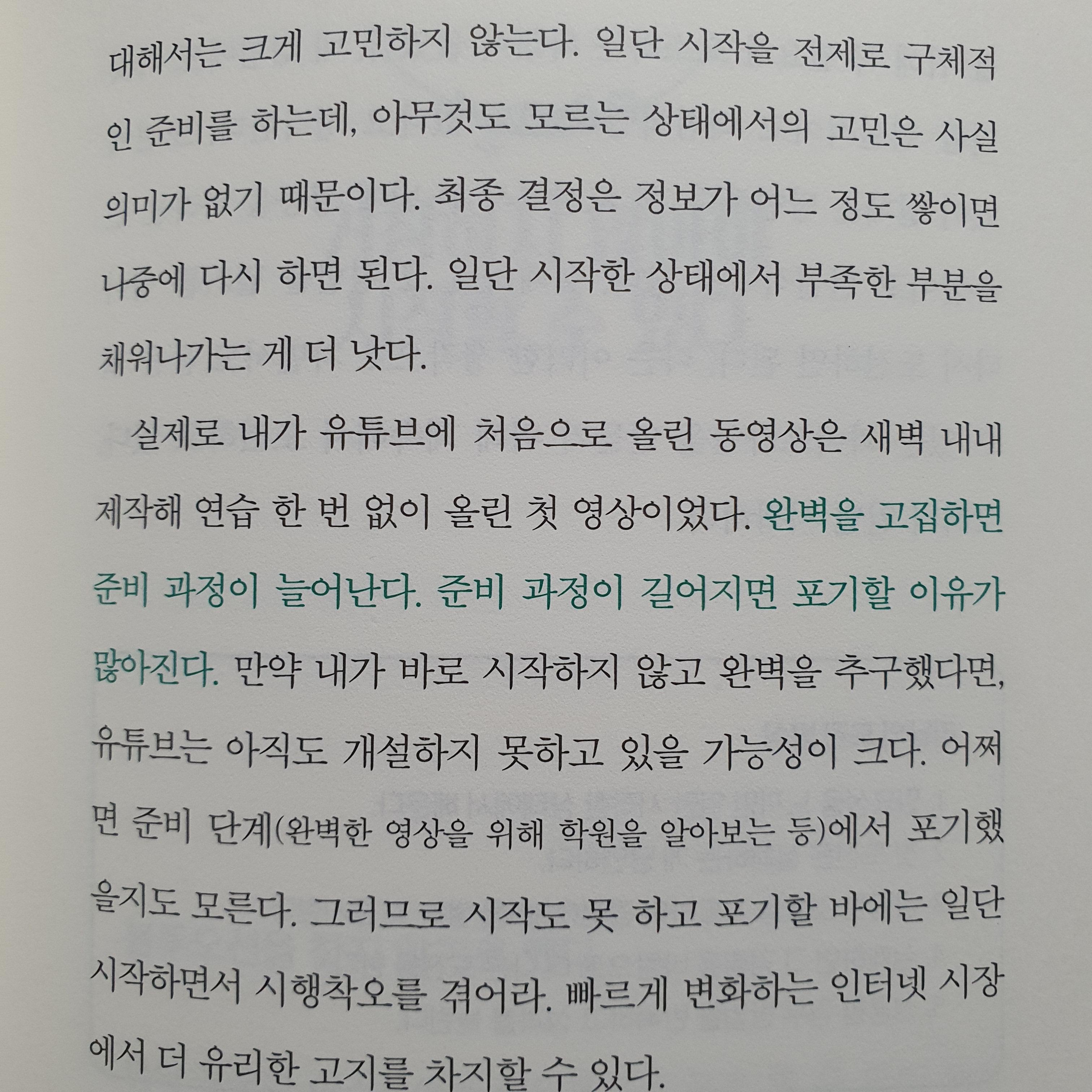 '완벽을 고집하면 준비 과정이 늘어난다. 준비과정이 길어지면 포기할 이유가 많아진다.'