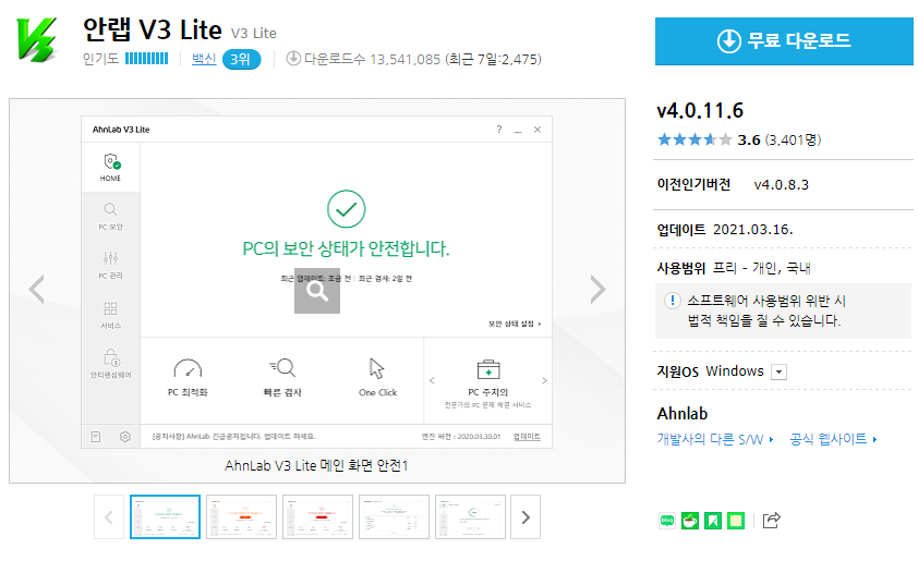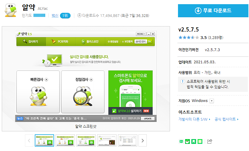 만약 안 사라지고 남아있다면 알약과 V3 각종 보안 프로그램들이 아직 남아있는지 확인 후 제거해주시고 다시 한번 재부팅해주시면 되겠습니다.