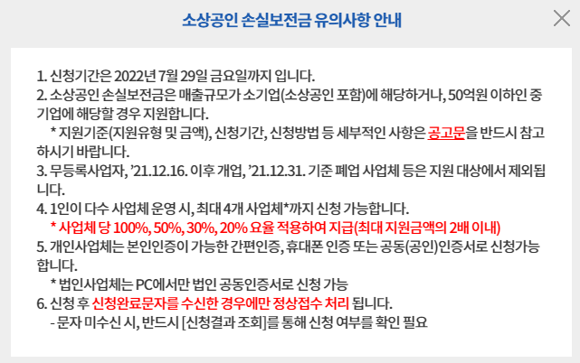 소상공인 손실보전금 유의사항 안내