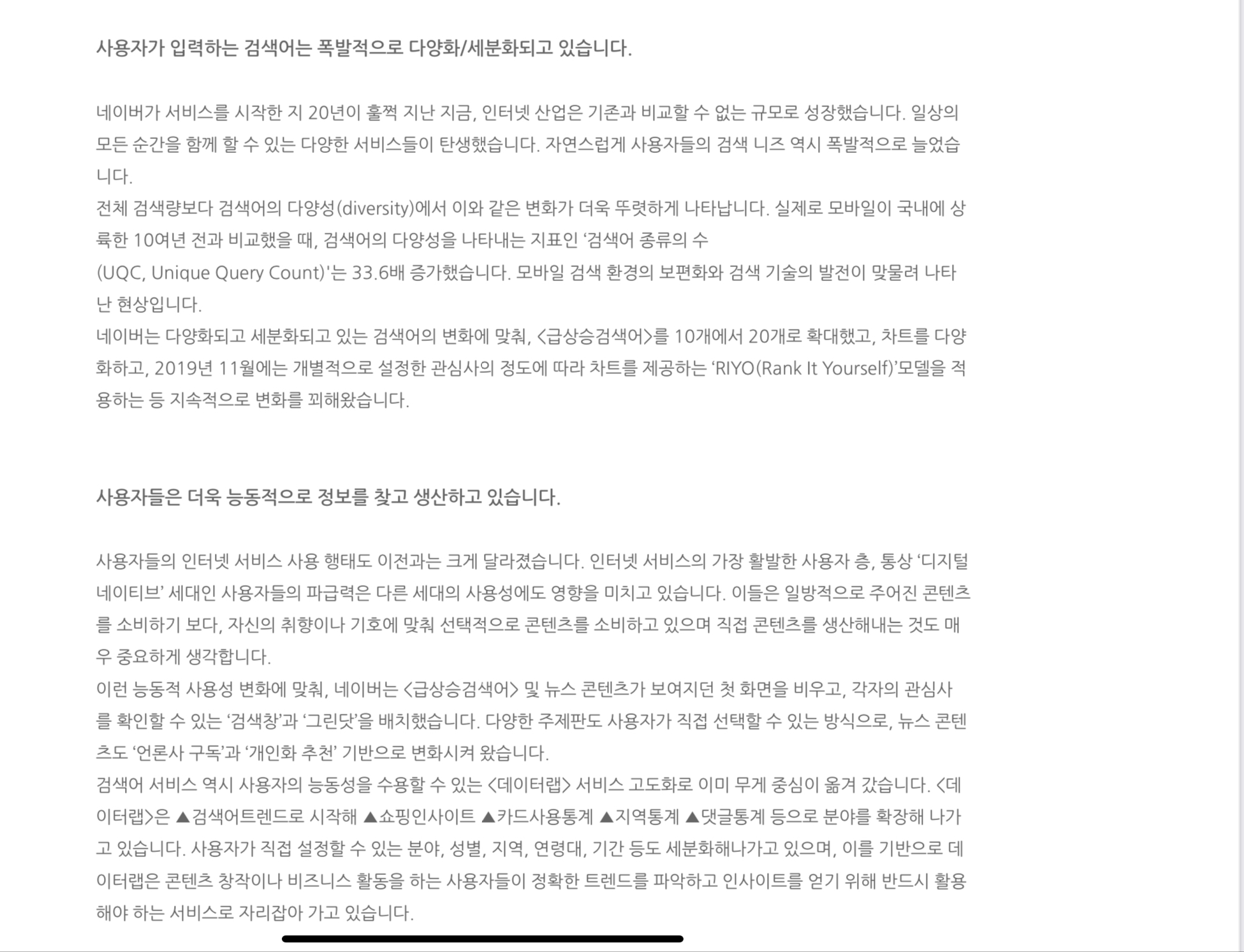 - 사용자가 입력하는 검색어는 폭발적으로 다양화/세분화되고 있다. 사용자의 변화에 맞춰 네이버도 반응했다.