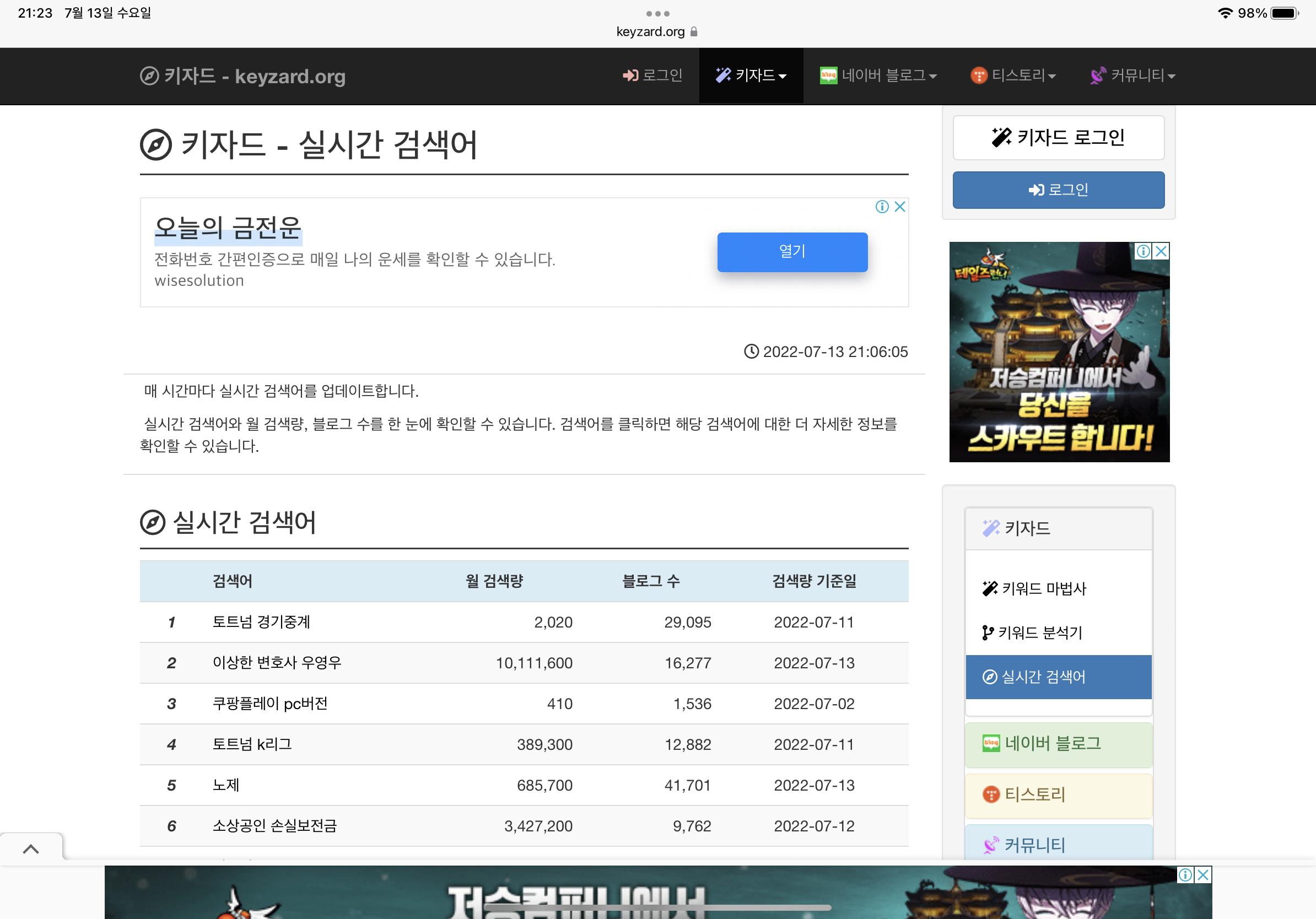 키자드 - 실시간 검색어