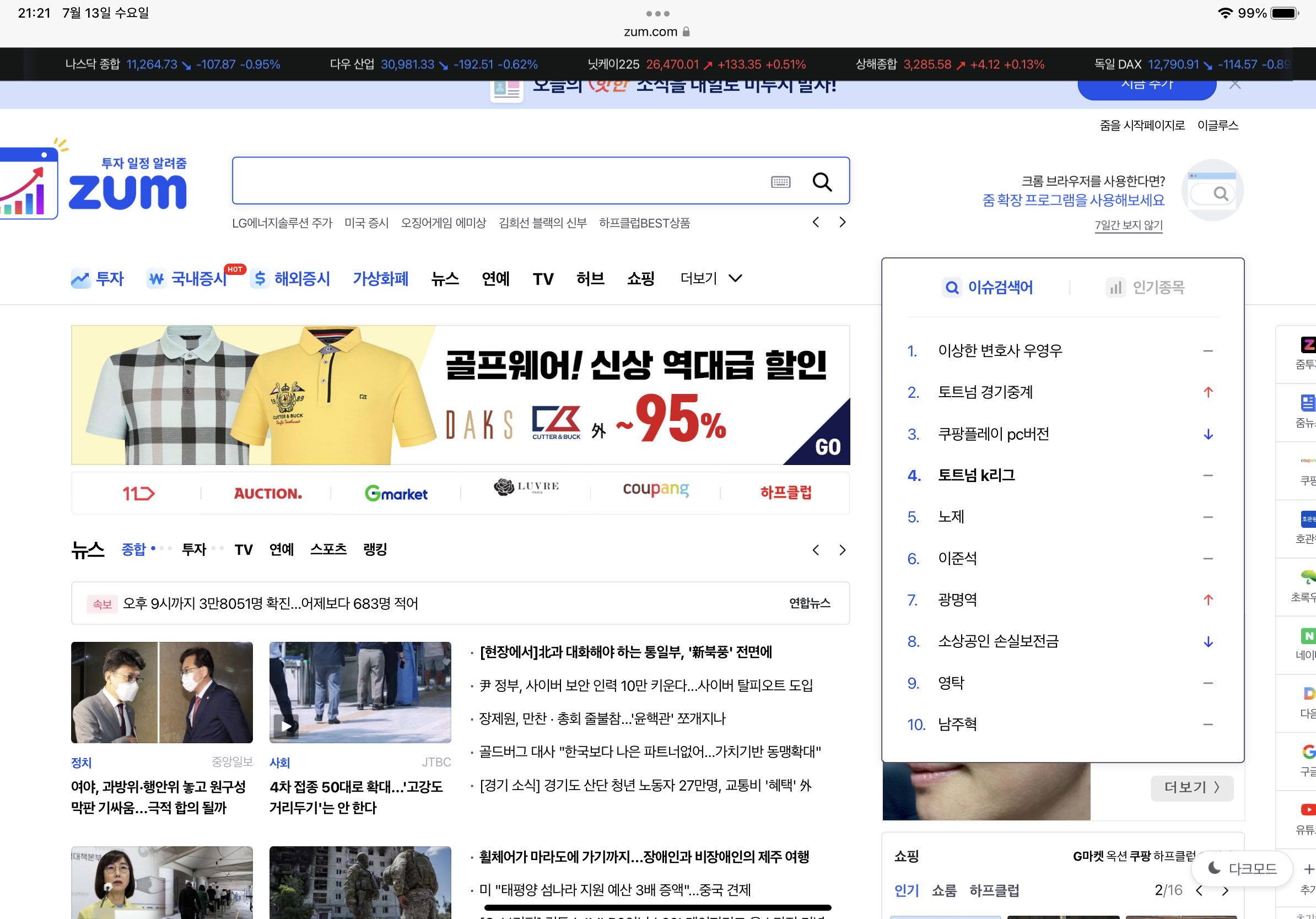 줌 포털 사이트에 이슈 검색어를 활용한다. 줌 또한 정확하지는 않다. 그래도 꽤 높은 검색량을 기록하고 있는 검색어들은 상위에 노출되기도 한다. 네이버나 다음, 구글에 비해는 이용자가 적은 편이나 그래도 그나마 괜찮다고 생각된다.