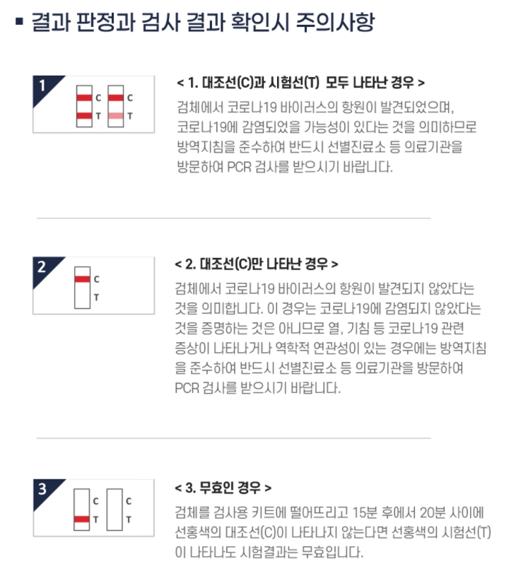 그래도 의심이 가는데 확인을 안하는 것보다 훨씬 나을 것 같고 또한 정기적으로 검사가 필요한 자택 근무가 불가한 회사나 음식점 등에서는 직원들 검사 차원에서 사용하는 것도 나쁘지 않은 방법이라 생각합니다.