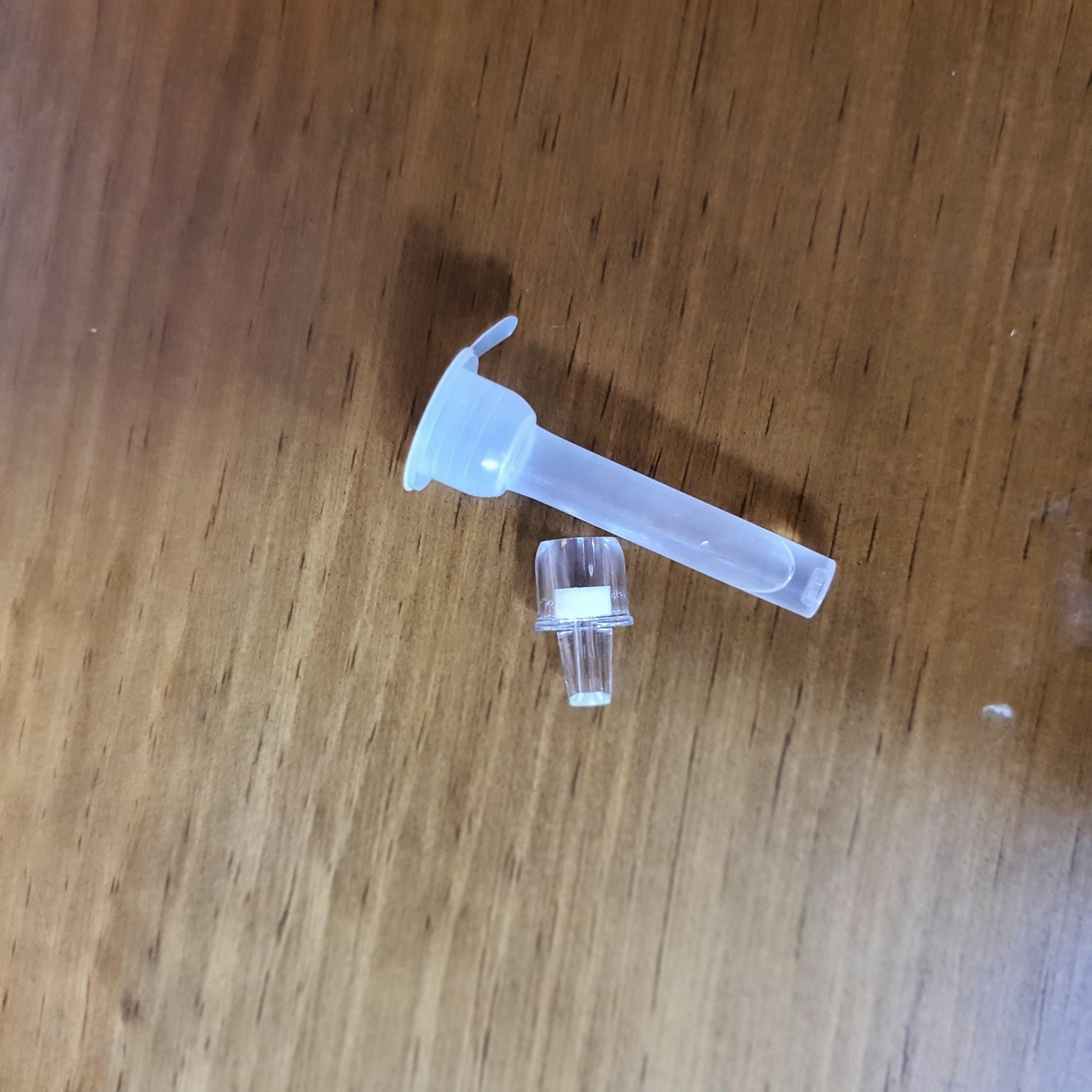 3. 스포이드로 검진 디바이스에 한 방울씩 3~4번 정도 떨어뜨려 줍니다.
