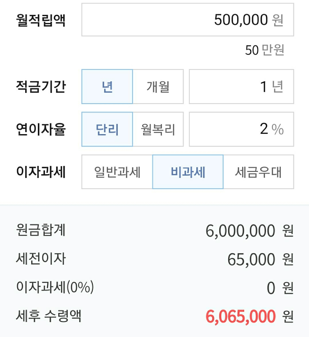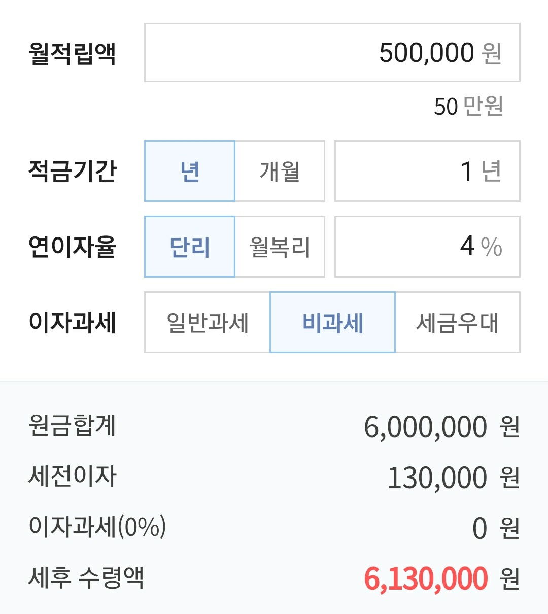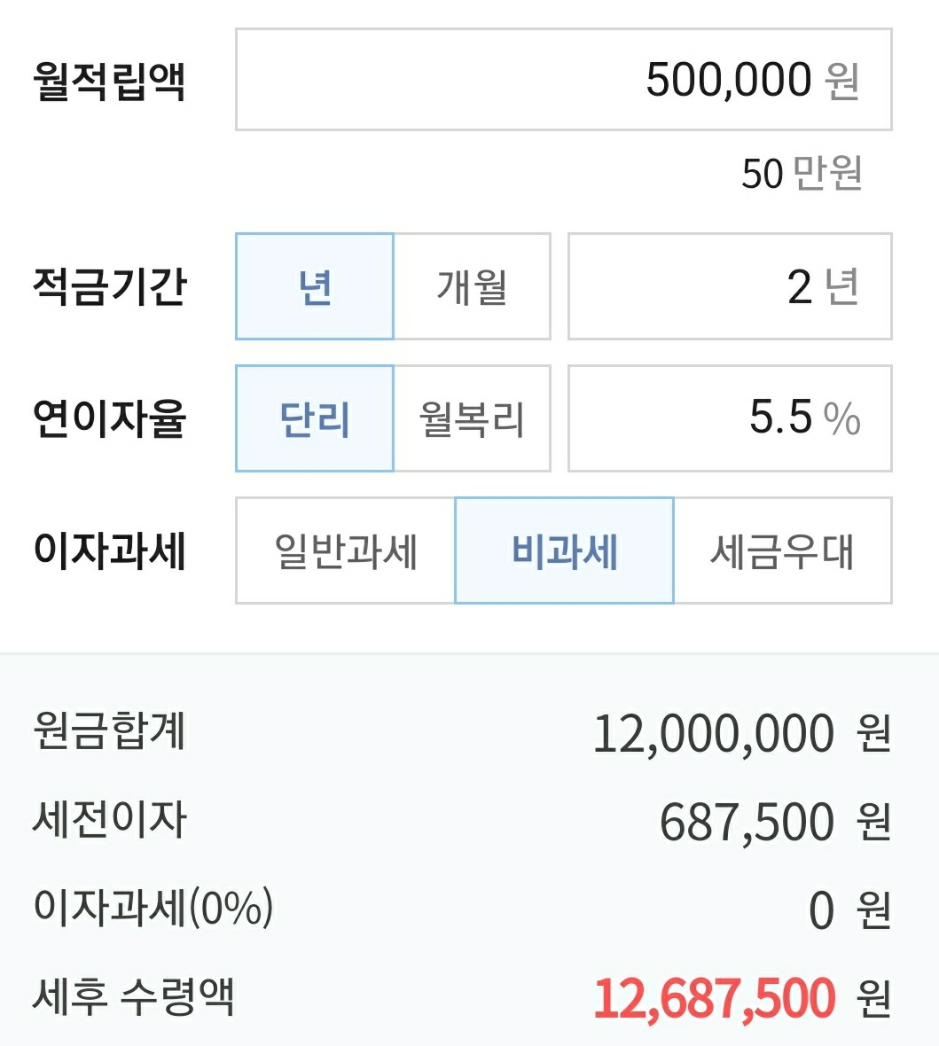 - 납입 금액 : 매월 10만 원에서 50만 원까지 자유롭게 납입 가능 (2년 만기 상품)